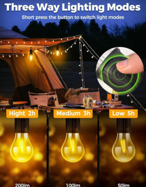 Light up your outdoor adventures with Rechargeable Camping Lights. Durable and bright, these lights provide long-lasting illumination for camping, hiking, or emergency use.